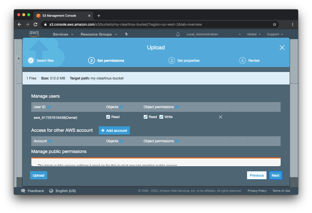 Upload the Clear Linux OS image into the bucket¶